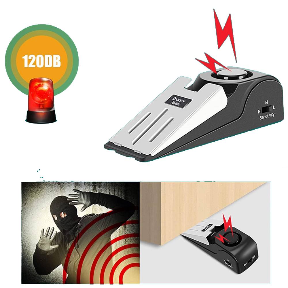 These work great. They are small and you just place them in front of your door. When the door is opened the slightest bit they set off the loudest alarm. They will definitely wake you up.